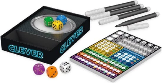 In Clever rol je met dobbelstenen voor punten. Elke dobbelsteen heeft een eigen kleur, die overeenkomt met een categorie op jouw persoonlijke scoreblad. De dobbelsteen die je na het rollen kiest, vul je op het scoreblad in. Elke kleurencategorie geeft punten op een eigen manier. Zo kruis je met de gele dobbelsteen vakjes aan in de gele categorie en vul je de waarde van de oranje dobbelsteen in bij de lege vakjes van de oranje categorie. Per beurt moet je drie keer rollen, waarna je telkens ????n dobbelsteen kiest. Elke lagere dobbelsteen dan degene die je kiest gaat naar het dienblad, waardoor de tegenspelers tijdens jouw beurt gebruik van deze dobbelsteen mogen maken. Hoe slimmer je kiest, hoe meer kans je hebt op het cre??ren van kettingreacties. Een paars vakje dat je invult kan een bonus geven waarmee je ook een geel vakje aan mag kruisen, waardoor misschien een tweede bonus in werking gaat die je een blauw vakje laat afvinken. Door zo de meeste clevere combo???s op te zetten behaal je de hoogste scores!