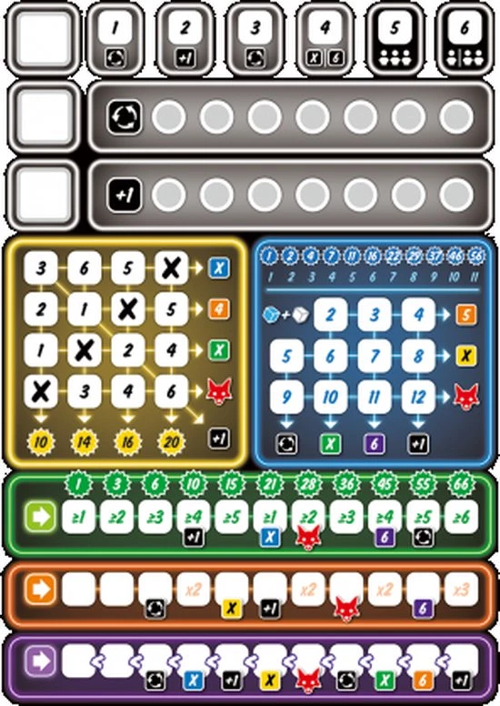 Hoe slimmer je kiest, hoe meer kans je hebt op het creëren van kettingreacties. Een paars vakje dat je invult kan een bonus geven waarmee je ook een geel vakje aan mag kruisen, waardoor misschien een tweede bonus in werking gaat die je een blauw vakje laat afvinken. Door zo de meeste clevere combo’s op te zetten behaal je de hoogste scores!