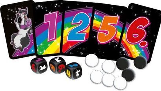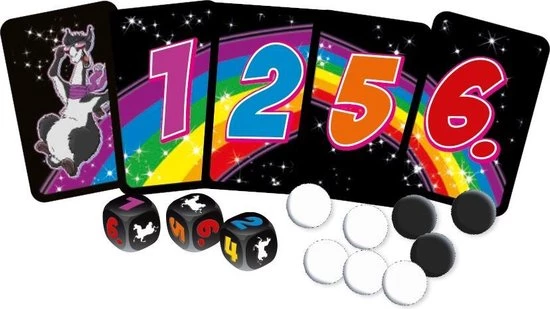 | Verpakkingsinhoud | Inhoud:, 3, LAMA, dobbelstenen, 43, kaartjes, 70, fiches, spelregels |
