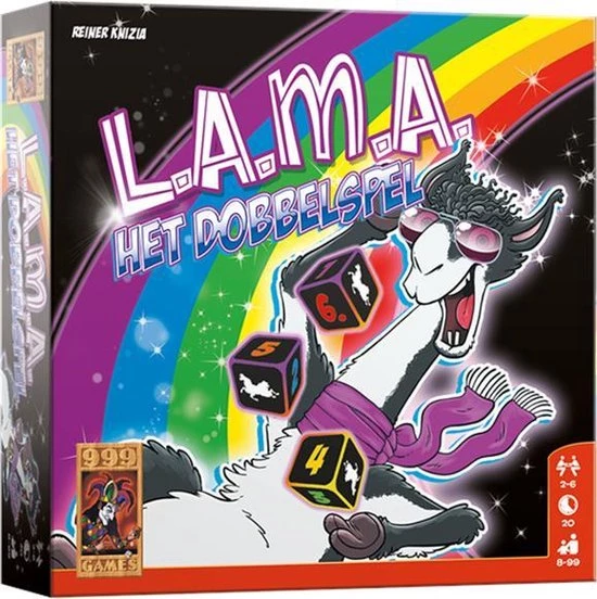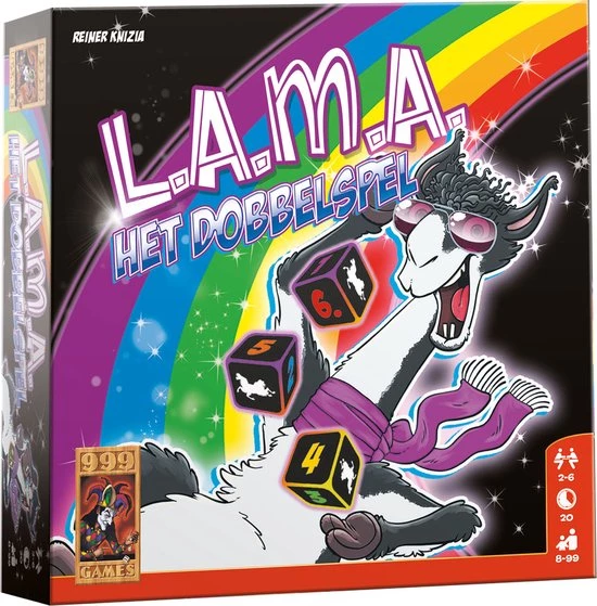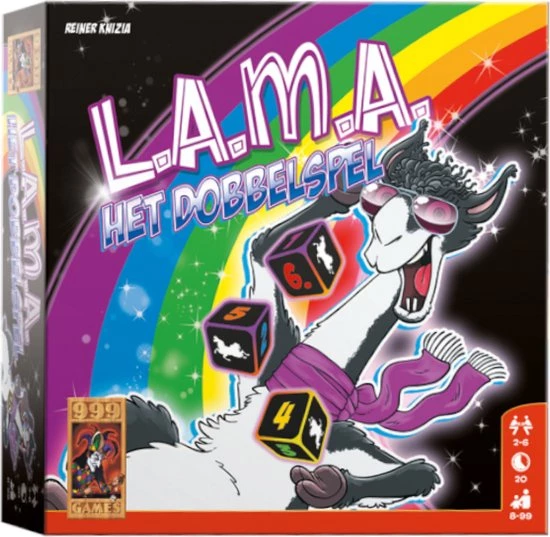 Het populaire kaartspel L.A.M.A. is terug? als dobbelspel! Rol met de dobbelstenen om zoveel mogelijk kaarten en minpunten af te leggen. Heb je een kaart met hetzelfde getal als een van de dobbelstenen? Dan mag je deze afleggen. Heb je dat niet? Dan moet je een kaart met hetzelfde getal uit de Lama-rij pakken. Hoe langer je wacht met uitstappen, hoe groter de kans op meer strafpunten. L.A.M.A.: Het Dobbelspel is net als zijn voorganger snel en makkelijk te leren. Door de dobbelstenen kent deze variant iets meer tactiek. Uit de ronde stappen of toch kijken hoeveel geluk (of pech!) je hebt, wordt zo een belangrijke keuze. Tegelijkertijd is het spel dankzij de zwarte en witte fiches nog steeds herkenbaar als echt L.A.M.A.