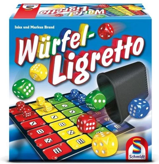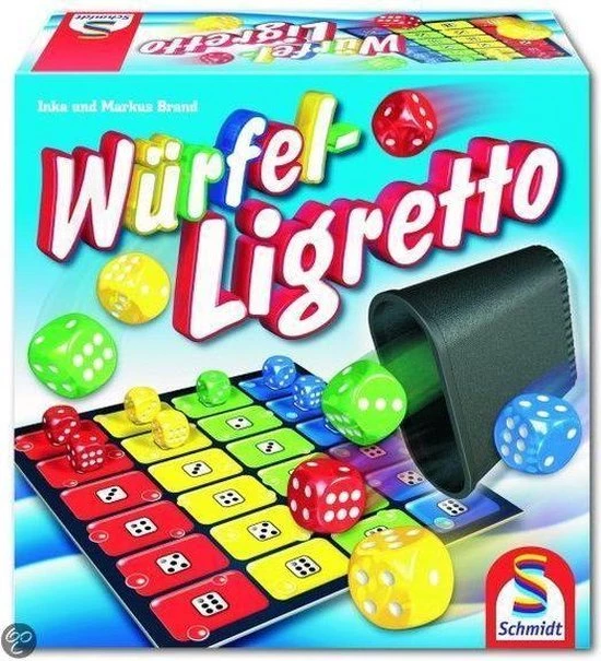 Een erg strategisch spel. Gooi de Ligretto Dobbelstenen een selecteer ze aan de hand van de kleuren. Degene die als eerste een volledige rij van 1 kleur heeft, is de winnaar.