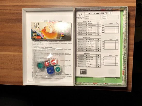 | Verpakkingsinhoud | VOETBALVELD, OP, BORD, POTLODEN, BOBBELSTENEN, EN, WEDSTRIJDAFSCHEURBLOK |
