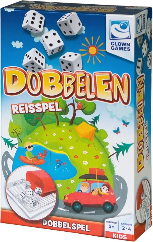 Het doel van het Clown Games Dobbelen reisspel is, om zo snel mogelijk alle vakjes van het scoreformulier in te vullen. Dit doe je, door een combinatie van de 5 dobbelstenen te maken, die je hebt gegooid. De speler met de hoogste score wint! Inhoud: 5 dobbelstenen, dobbelbeker en scoreblokje.