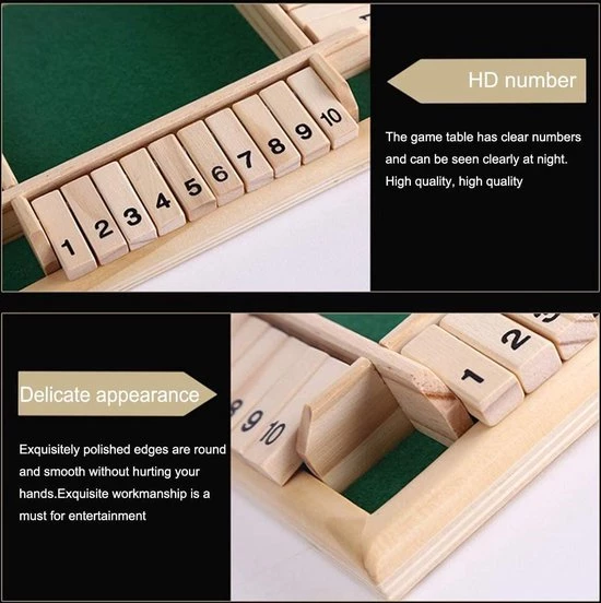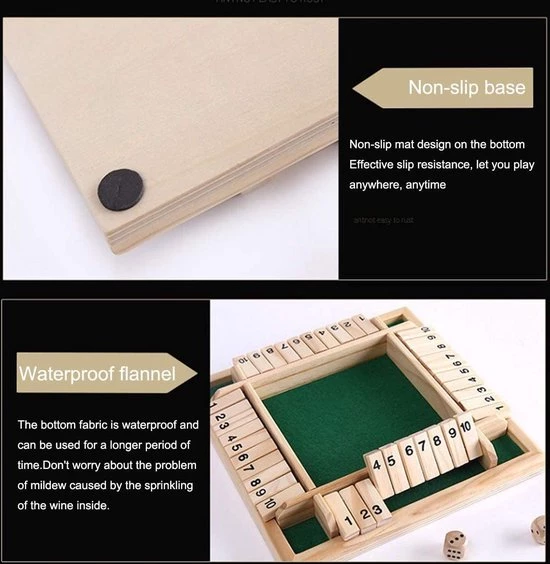 • Hoogwaardige Shut the Box, gemaakt van 100% natuurlijk hout, gezond en duurzaam.