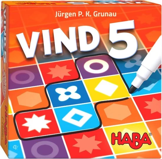 Dobbelspel VIND VIJF 5 is een groots spel met 2 spelopties + solovariant, wisbare spelborden en ook geschikbt voor mensen die kleurenblind zijn. 5d obbelstenen, 5 ronden – vormen van 5 vinden! Gelijktijdig zoeken de spelers verschillende vormen van 5 op hun bord en omcirkelen die met de stift. Maar let op: de plaats is beperkt en de vormen moeten alle gegooide symbolen omvatten! Bovendien kan op elk moment de zandloper omgedraaid worden, wat het einde van de ronde inluidt. Verschillende vormen van 5 leveren een verschillend aantal punten op. Wie na 5 ronden de meeste punten heeft, wint het spel!