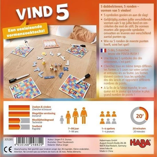 Kenmerken van dit Haba dobbelspel VIND VIJF:
