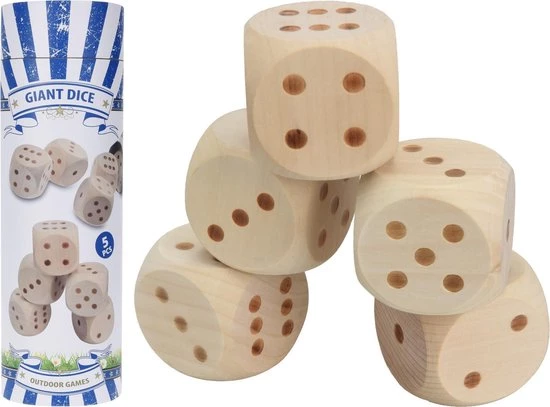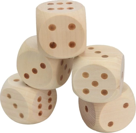 Speel de leukste dobbelspellen met deze houten dobbelstenen. De dobbelstenen komen in een handige koker zodat jij ze overal mee naartoe kunt nemen.