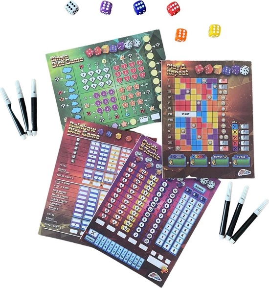 Dobbelspellen zijn tegenwoordig helemaal hip! Met deze set van vier dobbelspellen kun je uren zoet zijn met het hele gezin. De spelletjes zijn laagdrempelig en vari?rend, genoeg vermaak voor iedereen. De spellen zijn: