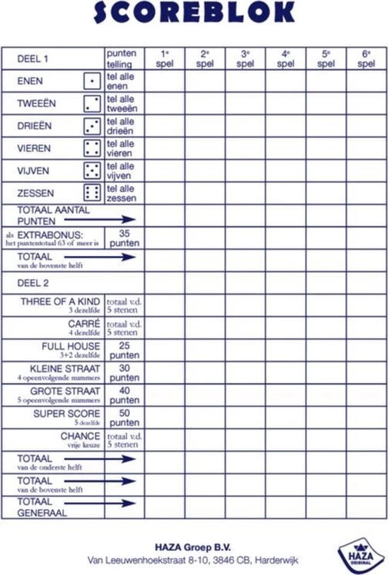 4x Scoreblok Yahtzee 250 vellen. Scoreblok om uw punten bij te houden met het dobbel spelletje Yahtzee. Dit blok bevat 250 velletjes en heeft een formaat van ca. 9,4 x 14,5 cm. Materiaal: papier. U ontvangt in totaal 4 stuks.