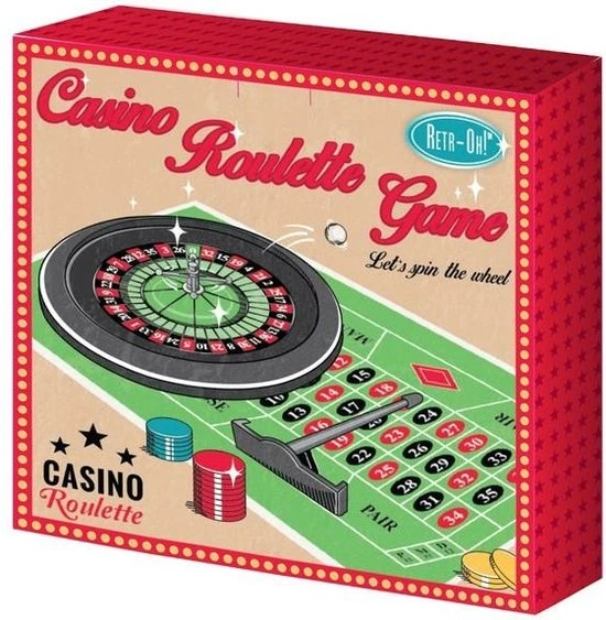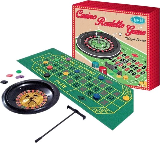 Complete set met roulettebak, roulettekleed, harkje en fiches. Leuk om met je vrienden of vriendinnen te spelen om echt de beleving te krijgen dat je in het casino bent.