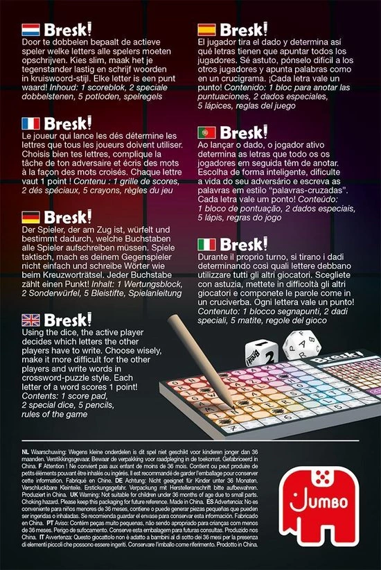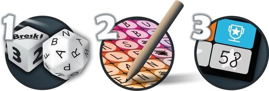Door te dobbelen bepaalt de actieve speler welke letters alle spelers moeten opschrijven. Kies slim, maak het je tegenstander lastig en schrijf woorden in kruiswoord-stijl. Elke letter is een punt waard!