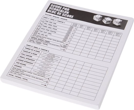 | Verpakkingsinhoud | Yahtzee, Blok, 10, dobbelstenen |