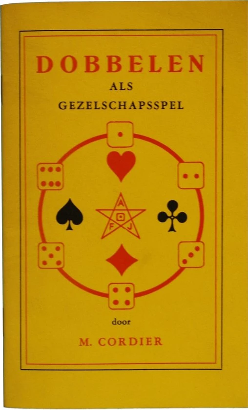Dobbel-spelregelboekje. Dobbelen en pokerdobbelspellen als gezelschapsspel, met kasje gooien, zanzibar en 5000 punten. pokerdobbelspellen; straight poker en bluf poker. 40 bladzijden. 15×10 cm. Nederlands