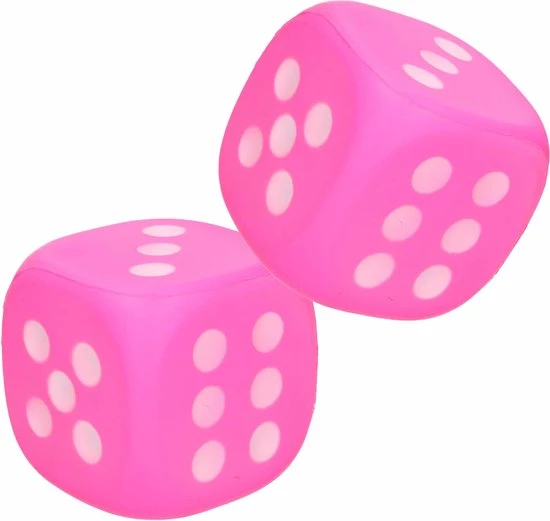2x Grote foam dobbelsteen/dobbelstenen roze 12 cm. Foam/schuimrubberen dobbelsteen met een formaat van ca. 12 x 12 cm. Aantal stuks: 2x.