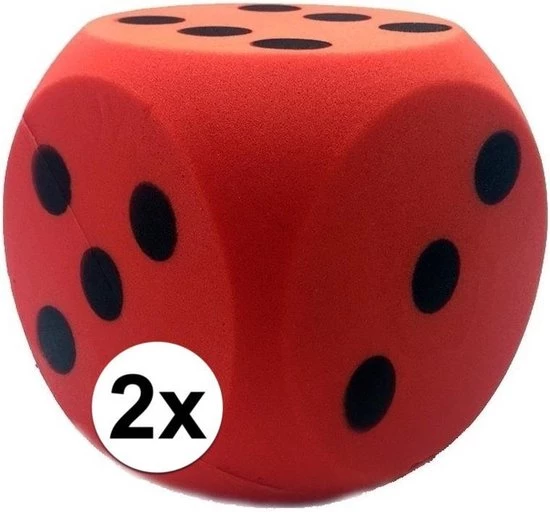 2x Sinterklaas spel dobbelstenen rood 4 x 4 cm. Sinterklaas spel foam / schuimrubberen dobbelstenen van ongeveer 4 x 4 cm. U ontvangt 2 stuks.