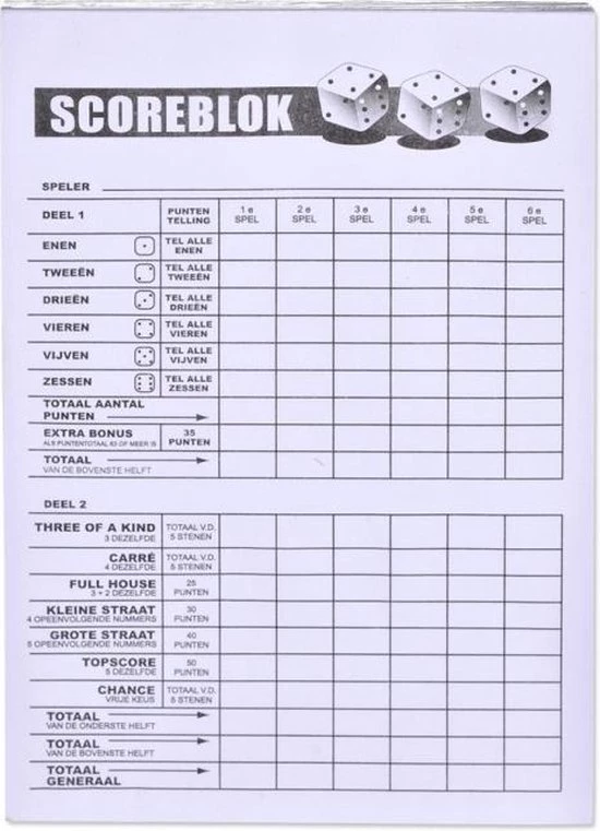 Scoreblok bevat 100 vellen met daarop 6 games voor extra lang speelplezier