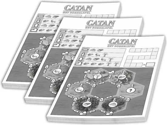 U ontvangt maar liefst drie scoreblokken voor de dobbel-editie van het succesvolle spel Kolonisten van Catan. Hiermee houdt u op een overzichtelijke manier alle scores bij!