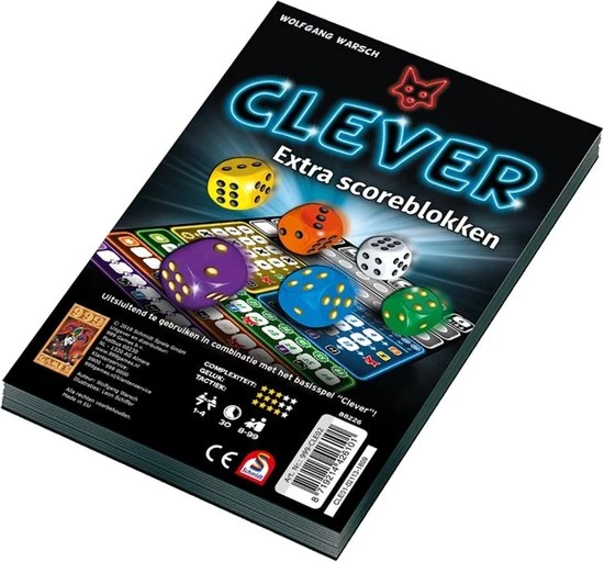 Twee scoreblokken voor Clever. Nu kunnen alle spelers die slim, snel en Clever hun blok vol hebben gespeeld weer vervangende blokken kopen!