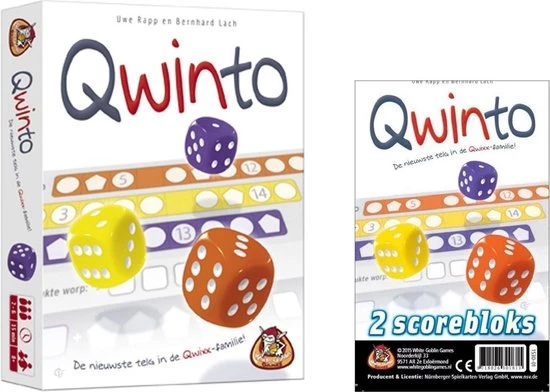 In Qwinto werken de spelers aan drie oplopende cijferreeksen. Iedere speler heeft een velletje van een notitieblokje voor zich liggen met daarop een oranje, gele en paarse rij die tijdens het spelen met cijfers gevuld gaan worden. Degene die slim het resultaat van de worp in ??n van de drie gekleurde rijen schrijft en de meeste bonuspunten scoort wint het spel!