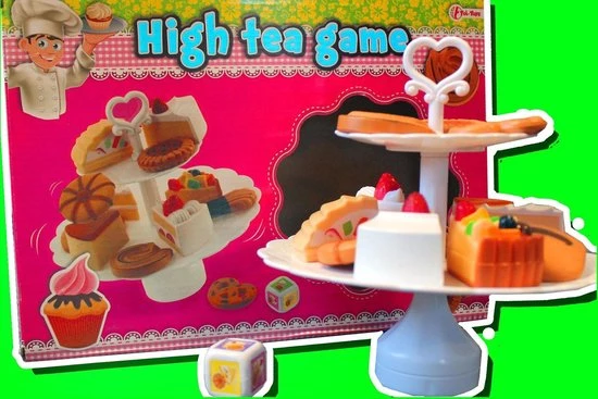Zet de etag?re in elkaar en zorg ervoor dat deze vol is. Gooi met de dobbelsteen en haal het koekje of cakeje van jouw worp van de etag?re . De eerste die de etag?re laat instorten heeft verloren.