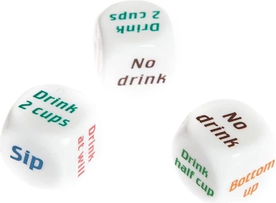Niets is leuker dan lekker met vrienden een drinkspelletje spelen, en daar hebben wij wat op gevonden! Deze dobbelstenen hebben extra leuke opties en kunnen echt niet ontbreken op een feestje! Een originele toevoeging aan een gezellige avond of een speciaal cadeau. Bottoms up!