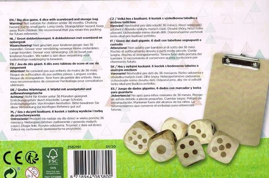 | Verpakkingsinhoud | dobbelsteen, set, game/, met, bewaarzak, en, score, bord, 7x7x7, cm |