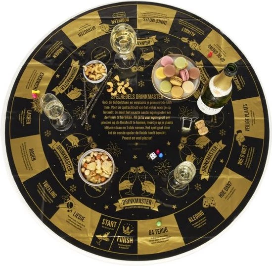 Leg het Drinkmaster spel End of the year editie op een statafel (of iedere andere tafel, als het kleed maar past) en je weet zeker dat het een gezellige Oud & Nieuw gaat worden.