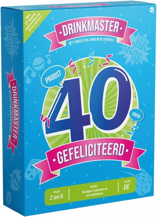 -Dit Drinkmaster spel is het ideale spel op het feestje van iemand die zijn of haar 40e verjaardag viert.