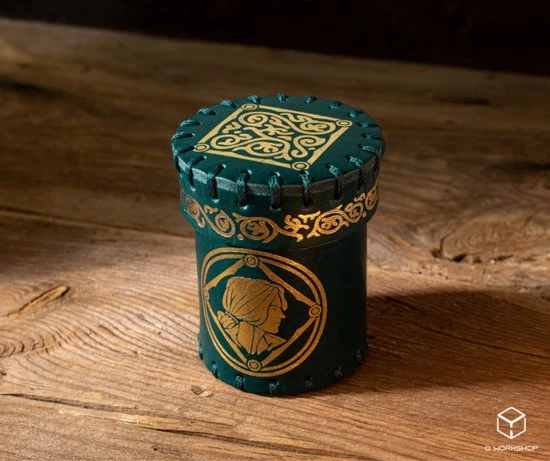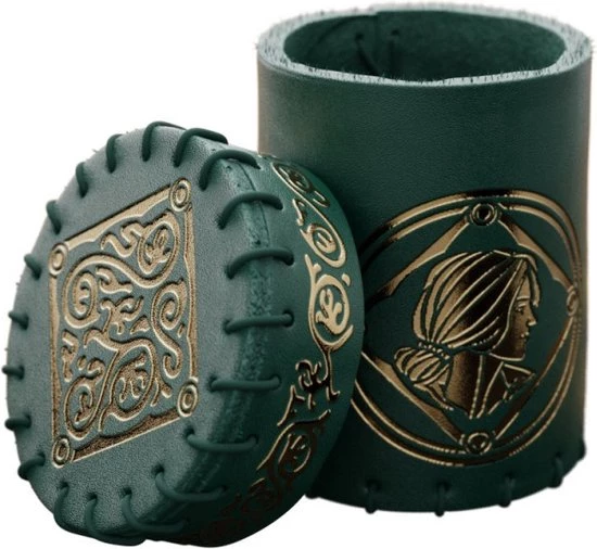 Ge?nspireerd door de wereld van The Witcher, presenteert deze dobbelbeker Triss, die als een zus was van Ciri en Yennefer. De beker is geschikt voor maximaal 20 dobbelstenen en is gemaakt van echt leer, turqoise met gouden artwork in reli?f. Bovenop het deksel rust het medaillon van Triss, zachte en ingewikkelde wervelingen sieren de rand, terwijl de basis van de beker het mooie gezicht van de tovenares draagt.