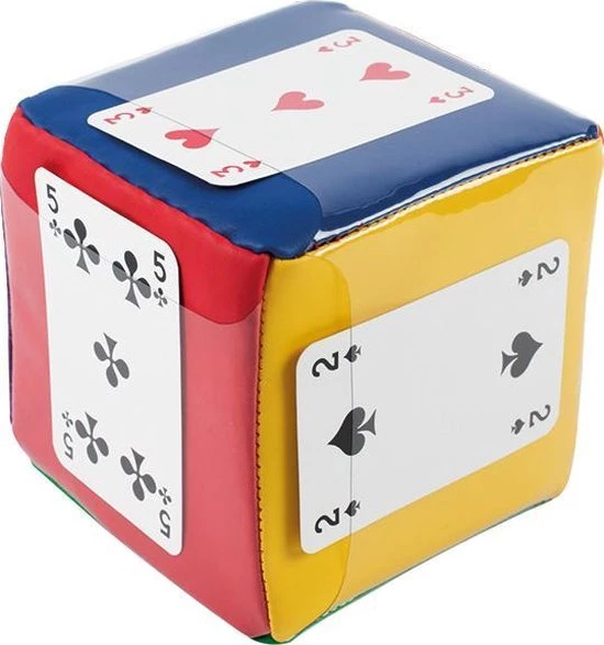 De dobbelsteen is van foam, maar heeft een stevige buitenkant van PVC.