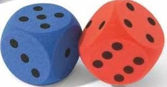 Met deze reuze dobbelstenen (16cm) zal geen dobbelspel meer hetzelfde zijn! U ontvangt 2 dobbelstenen een in rood en een in blauw.