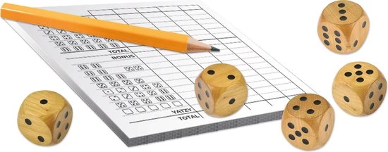 Gooi met vijf dobbelstenen om de combinaties op het scoreblok te halen. De speler die aan het eind van het spel het hoogste puntentotaal heeft, is de winnaar!