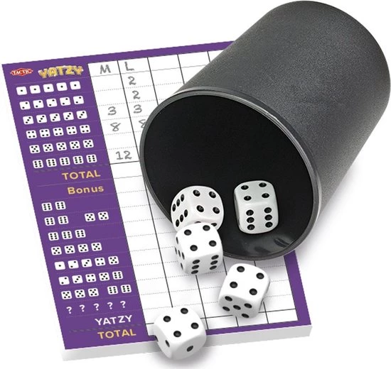 | Verpakkingsinhoud | -, 5, Dobbelstenen<br, />-, Dobbelbeker<br, />-, Scoreformulier<br, />-, Spelregels |