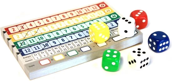 - Inhoud: – 6 dobbelstenen – 1 scoreblok – spelregels