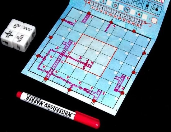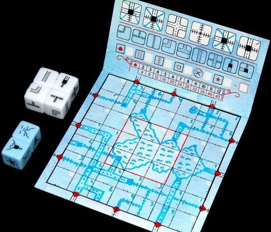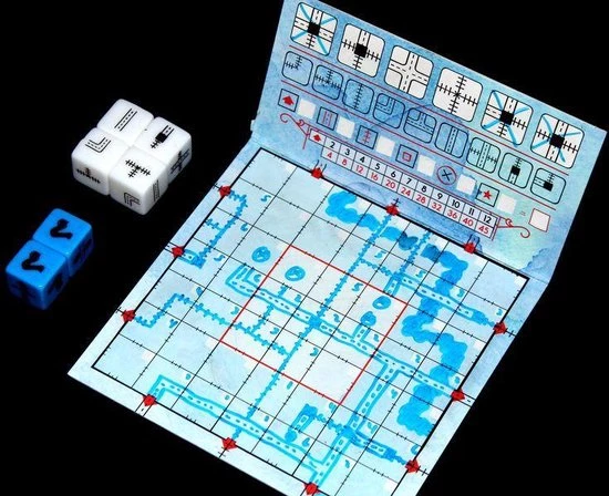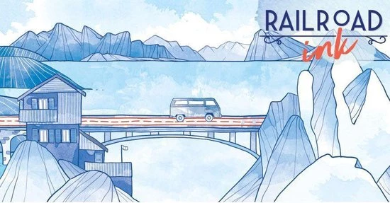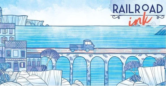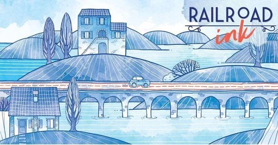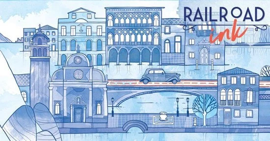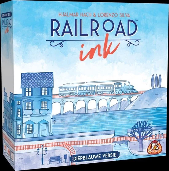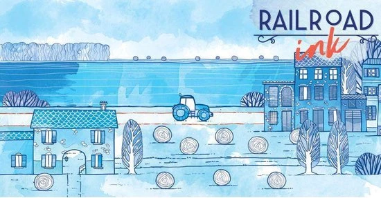 Taal:Nederlands White Goblin Games Railroad Ink: diepblauwe versie