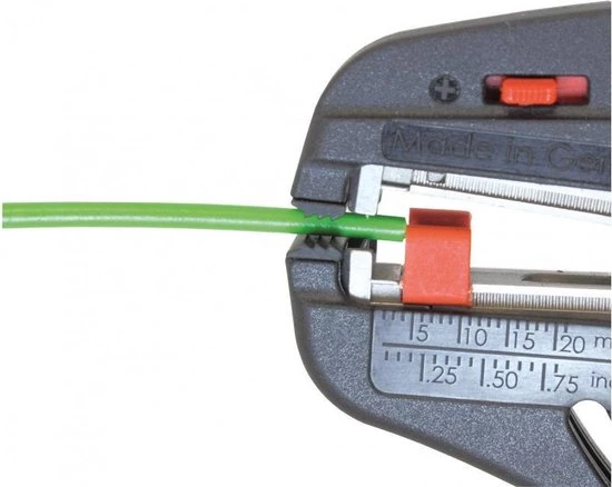 - “Eenvoudig strippen” belooft de automatische draadstripper van Wiha. Met de snijfunctie kunnen kabels op de gewenste lengte worden gesneden. Bovendien, de geïntegreerde handbescherming verhindert op snijwonden en voorkomen dankzij de automatische sluitfunctie dat de kabels van de kabelboom per ongeluk beschadigd. Met slechts één paar tangen is het strippen van kabels in het bereik van 0,03 – 16 mm² mogelijk. Nauwkeurig werk maakt ook de instelbare lengte stop mogelijk. Bovendien wordt de draadstripper gekenmerkt door bijzonder weinig ruis. De terugslag te verminderen bij het strippen grote kabeldiameters van 6mm² en beschermen van de polsen, kan de bijgevoegde klep worden ingebracht in de tang. Bovendien zijn de bijgeleverde vervangende mesjes en vervangende hulpmiddelen onmiddellijk bij de hand. Nadat de handgrepen zijn gearreteerd, is de stripper ruimtebesparend en veilig vergrendeld, waardoor deze ideaal is voor mobiel gebruik.