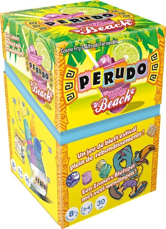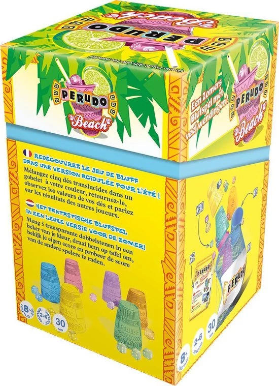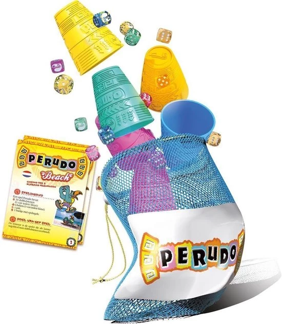 Perudo Beach is een variant van het bekende Perudo spel, maar dan met een zomerse twist. Het is een eenvoudig en zomers blufspel vol verrassende wendingen. Ben jij de grootste bluffer? Perudo Beach win je door het beste te bluffen en door goed te gokken wat de andere spelers hebben gegooid. Deze Beach versie is volledig waterproof en voorzien van een handig strandtasje, dus ideaal om mee te nemen naar het strand of het zwembad.