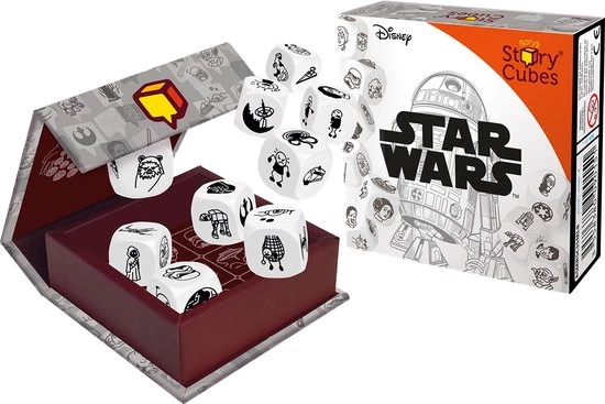 Lang geleden, in een sterrenstelsel hier ver, ver vandaan? Probeer een Star Wars verhaal te vertellen aan de hand van de 9 zichtbare afbeeldingen. Rol alle 9 dobbelstenen. Begin je verhaal met ?Lang geleden, in een sterrenstelsel hier ver, ver vandaan…? Er is ??n regel: elk verhaal is goed zolang het zich maar in het Star Wars universum afspeelt. Zoals altijd raden we je aan om de iconische afbeeldingen van Rory?s Story Cubes? goed te interpreteren zodat je ze naar eigen inzicht kunt gebruiken voor jouw Star Wars verhaal. Werp de stenen en vertel jouw eigen verhaal met Star Wars: Rory?s Story Cubes?!